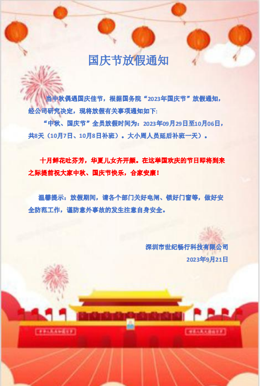 2023国庆节放假通知